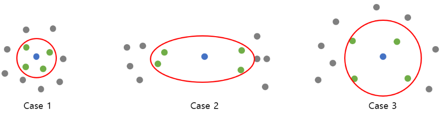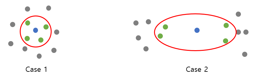 - 해당 point를 제외하고, neighbor들이 같은 위치에 있을 경우. 해당 point는 그 무리에 해당하지 않기 때문에 outlier이다.