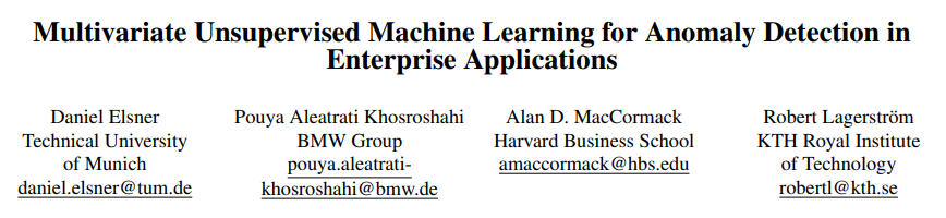 [참조] Elsner, Daniel, et al. "Multivariate Unsupervised Machine Learning for Anomaly Detection in Enterprise Applications." Proceedings of the 52nd Hawaii International Conference on System Sciences. 2019.
