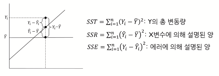 - SSR : 갖고 있는 X를 이용하여 얼만큼 설명할 수 있는지